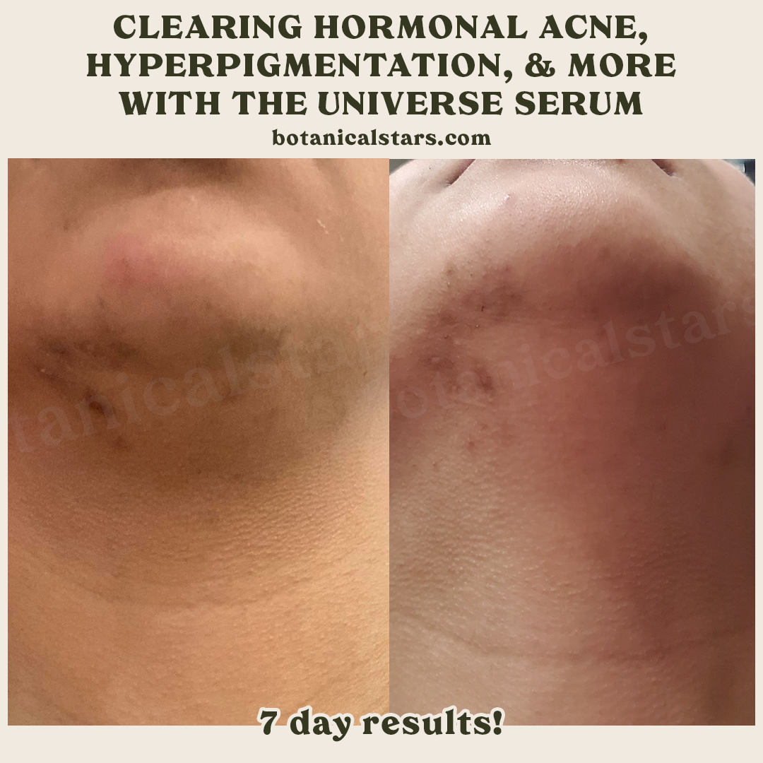 Gentle and nourishing are the tactics for happy skin here. That's why our hyperpigmentation busting, all-around-skin-hero 'Universe' is made with powerful yet calming ingredients (like Niacinamide, Chamomile, & Prickly Pear Seed!).